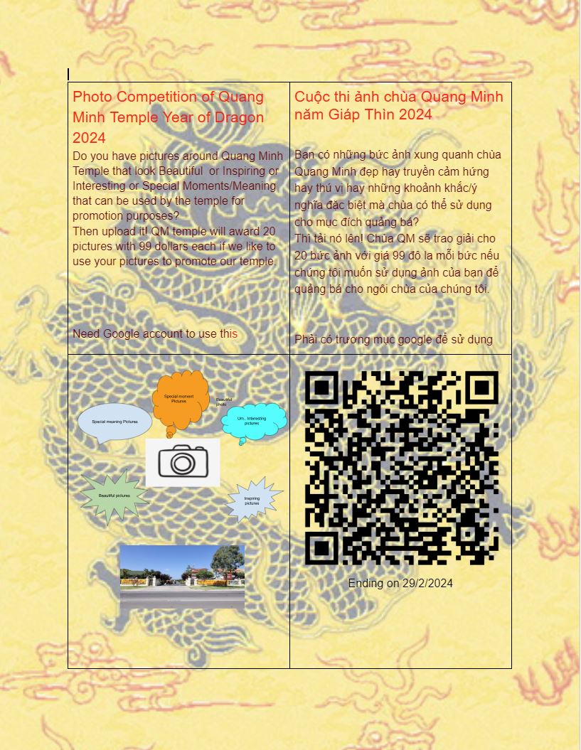Xin Cảm ơn tất cả mọi người đã tham gia và đã tải hình đẹp vào chùa. Cuộc thi đã chấm dứt, bạn có thể được liên lạc qua email nếu bạn trúng giải.