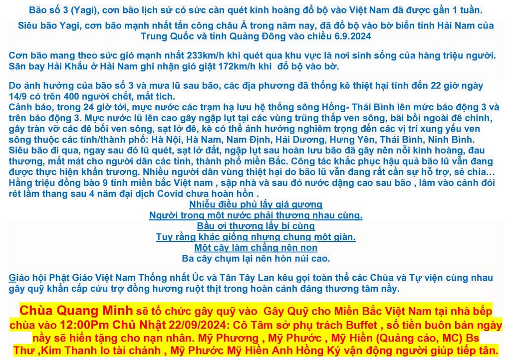 Xin liên lạc văn phòng Chùa Quang Minh để biết thêm chi tiết, hoặc ủng hộ đóng góp